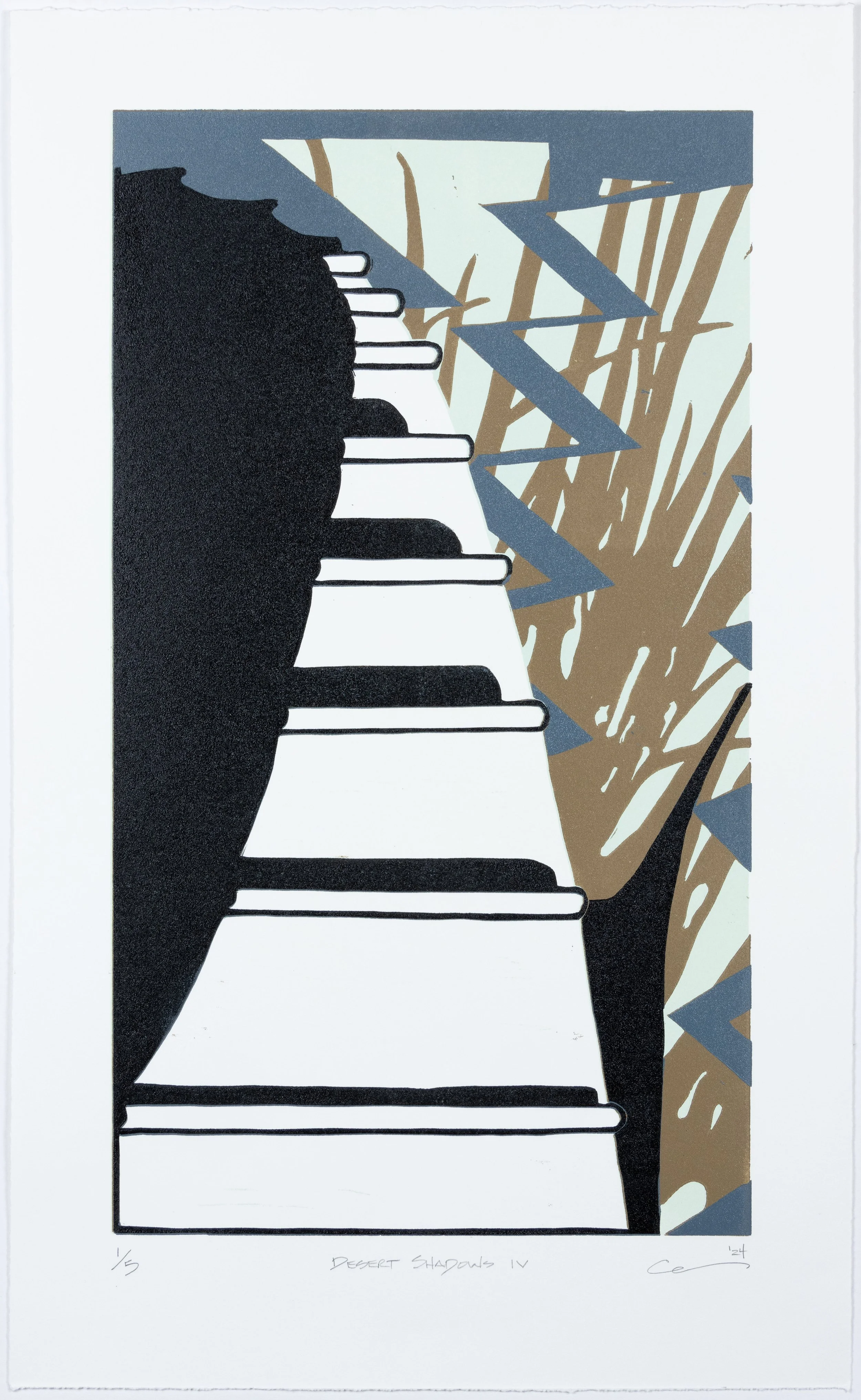 Desert Shadows III / 2024 Linocut: Reduction 1 Plate 4 Color (27" X 16.5")